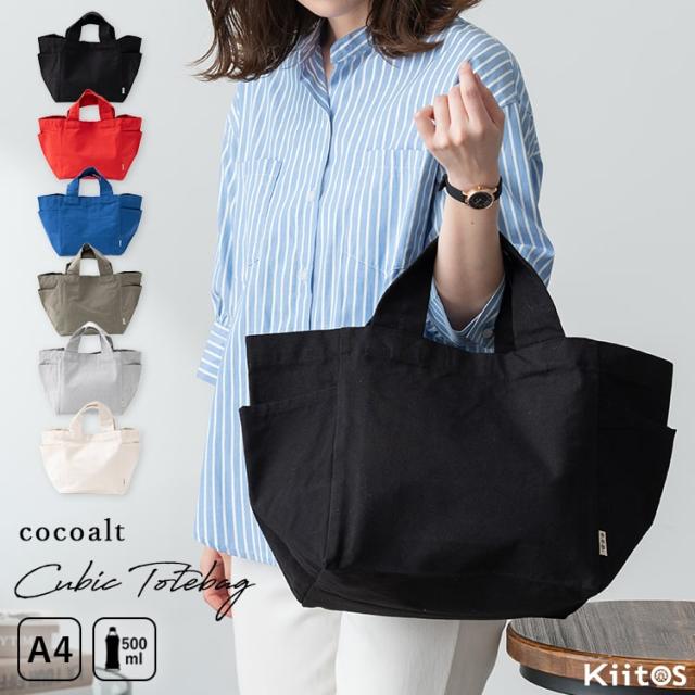 キュービック型のコロンとしたフォルムが可愛い、ミドルサイズのトートバッグ。