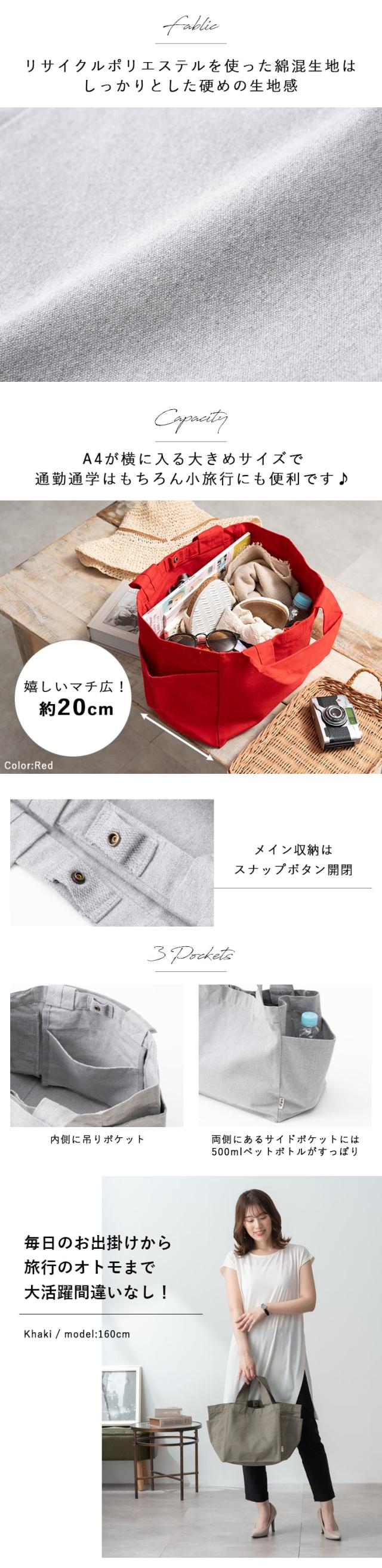 トートバッグ レディース 大きめ a4 キャンバス 布 大容量 軽量 通学 通勤 リサイクル素材 シンプル ナチュラル 鞄 かばん 学生 お出かけ 犬 散歩 ペットボトル かわいい おしゃれ コットン マチあり 無地 白 黒