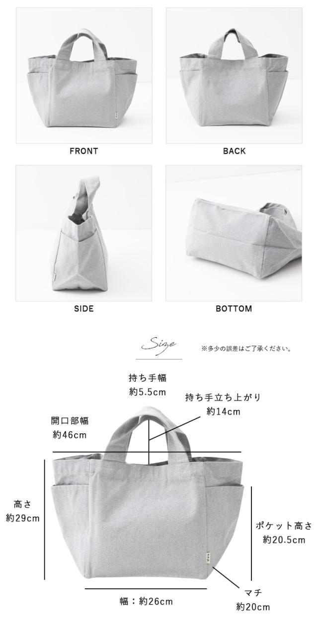 リサイクル素材と綿素材を合わせた環境に優しい生地はしっかりした硬めの生地感で、マチが約20cmと広いから少ない荷物でも自立するデザイン。