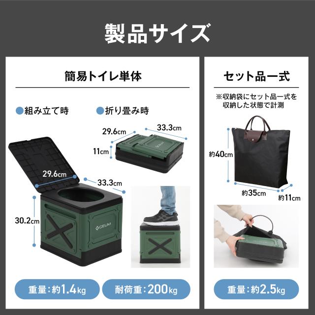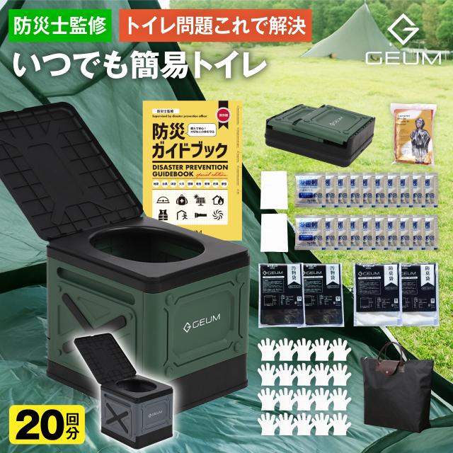 【防災士監修】簡易トイレ 折りたたみ ポータブルトイレ 防災 アウトドア 介護用 にも使える 携帯トイレ 20回分 凝固剤 汚物袋 収納袋 手袋 テッシュ 目隠しポンチョ 手持ち収納袋付き 耐荷重200kg 【1年保証&説明書&防災ガイドブック付き】