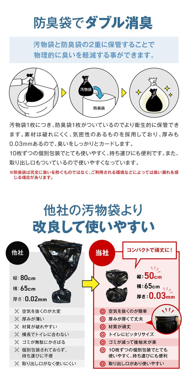 ※防臭袋は完全に臭いを防ぐものではなく、ご利用される環境などによっては臭い漏れを感じる場合があります。