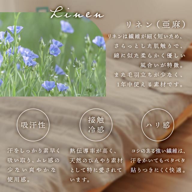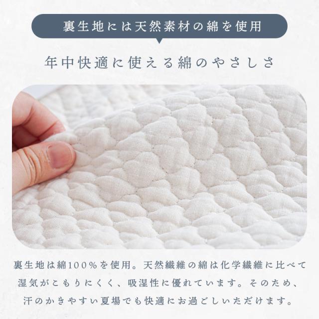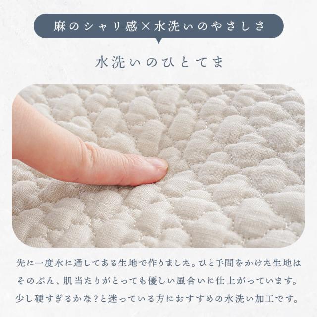 | ・寝苦しい夏をもっと涼しく、もっと快適に。 天然繊維の「麻」が持つ涼しく軽い風合い。表生地リネンでサラッとやわらかく優しい肌触りが快適。西川株式会社の麻水洗い枕パッドです。 ・表生地には優しい肌触りのリネンを使用し、快適な寝心地を実現しましたリネンは涼しく通気性が高く、また湿気を素早く吸収して放出する素材です。柔らかな繊維が肌触りを優しくし、耐久性も兼ね備えています。 ・麻のシャリ感×水洗いのやさしさ。水洗いのひとてま先に一度水に通してある生地で作りました。ひと手間をかけた生地はそのぶん、肌当たりがとっても優しい風合いに仕上がっています。少し硬すぎるかな?と迷っている方におすすめの水洗い加工です。 ・裏生地には天然素材の綿を使用。年中快適に使える綿のやさしさ裏生地は綿100%使用。天然繊維の綿は化学繊維に比べて湿気がこもりにくく、吸湿性に優れています。そのため、汗のかきやすい夏場でも快適にお過ごしいただけます。 ・中綿にも綿を70%使用。不快に感じるムレ感を軽減一般的に中綿はポリエステル100%のものが多いですが、この商品は綿を70%使用されています。綿を使用することで、汗を吸収しムレ感や寝苦しさを軽減し、快眠をサポートします。 ・安心の品質西川製品品質にもこだわりたいという方も安心。日本有数の寝具メーカー「西川」の製品です。長年寝具を作ってきたからこその信頼できる品質があります。 ・洗濯機で丸洗いOK!じゃぶじゃぶ洗えていつも清潔直接お肌に触れるものだから「洗える」を条件に選びたい。洗濯機で丸洗いOKなので、汚れても気軽にご自宅でお洗濯できいつでも清潔にお使いいただけます。 | |
