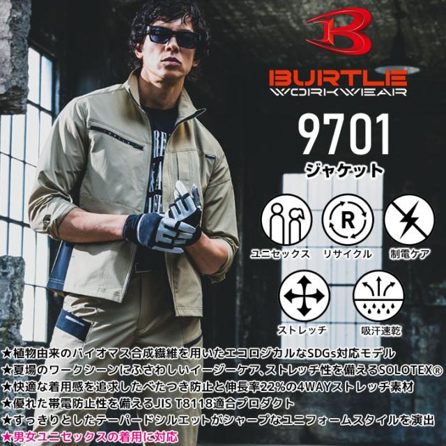 バートル ストレッチ ジャケット 9701 エコ4WAYストレッチ ジャケット 9701【春夏】吸水速乾 ドライタッチ 制電ケア SOLOTEX 細身 テーパードシルエット JIS T8118 メンズ レディース 制服 作業着 作業服 BURTLE 9701シリーズ