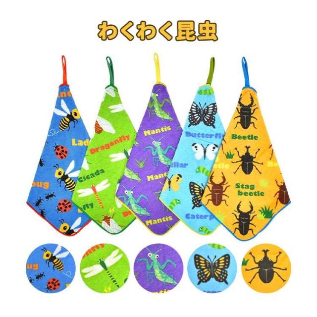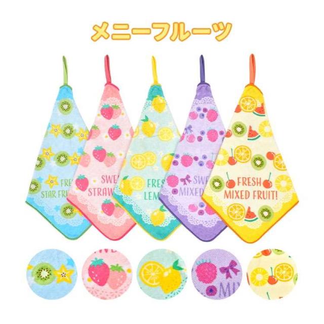 ループタオル 5枚セット 保育園 幼稚園 子供 キッズ 女の子 男の子 フルーツ 昆虫 宇宙 タオル ループ付き 手拭き 口拭きタオル 大きめ 25cm 制菌加工 ネームタグ 綿 パイル地 ハンドタオル ハンカチ おしぼり ピッコリーノ おしゃれ かわいい カラフル 子ども 入園 準備