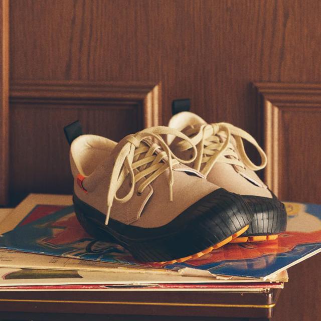ワークブーツの先芯が入ったような丸みを帯びたトゥデザイン。