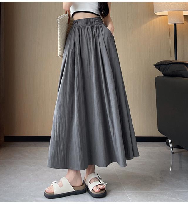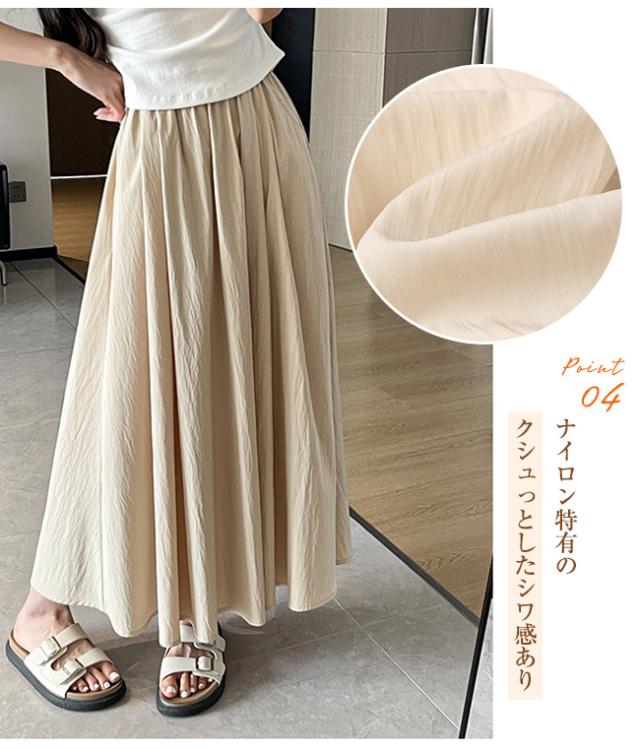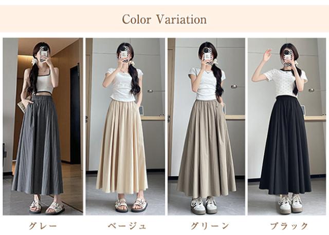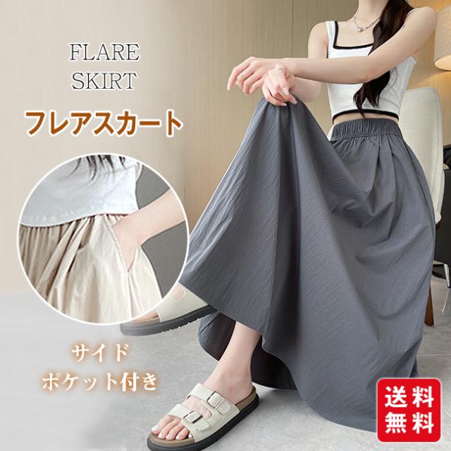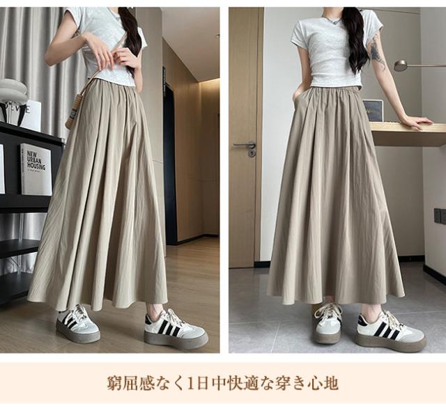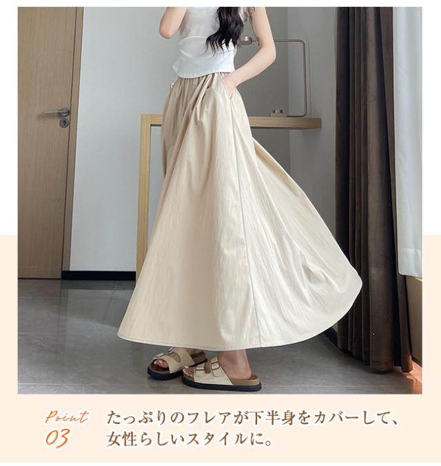 10倍ポイント返還! フレアスカート ロングスカート ミモレスカート レディース 裏地なし ハイウエスト ウエストゴム 着痩せ Aライン 体型カバー 脚長効果 春 夏 秋 無地 カジュアル 大人かわいい ポイント消化