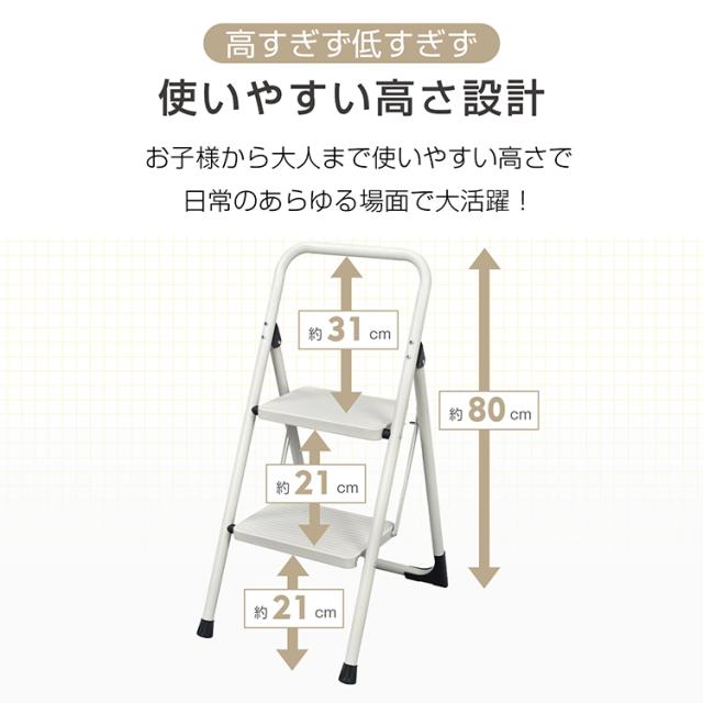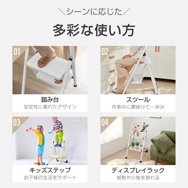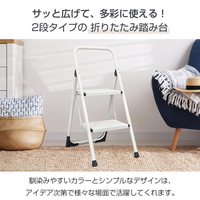 ■サッと広げて、多彩に使える!2段タイプの折りたたみ踏み台です。