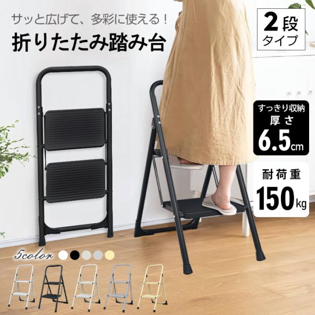 新生活 踏み台 2段 折り畳み式 折りたたみ 厚さ6.5cm 脚立 ステップ台 耐荷重150kg スツール ディスプレイラック キッズステップ おしゃれ 2段脚立 折りたたみステップ 滑り止め加工 コンパクト ステップチェア ステップスツール はしご 掃除 家庭用 sg235