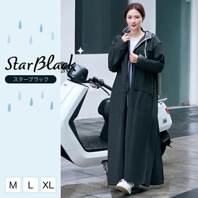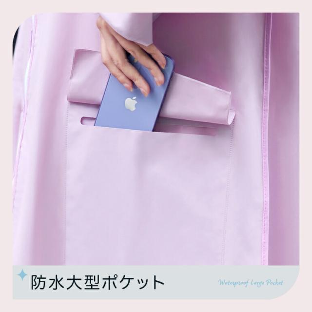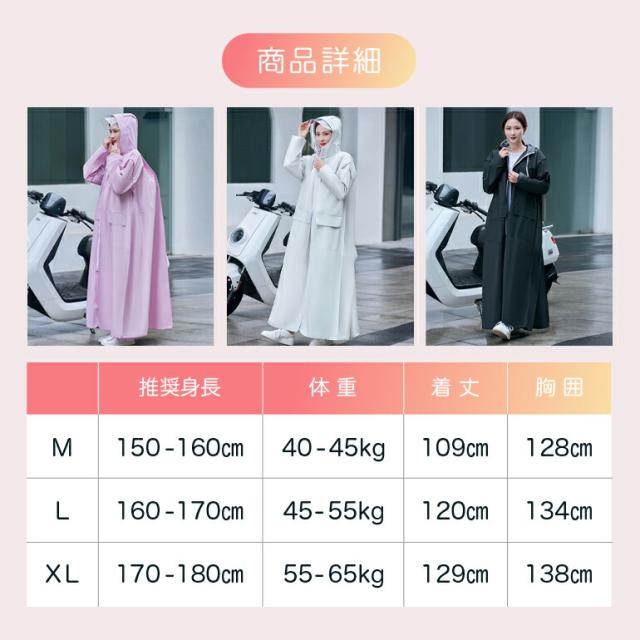 足元まで全身をすっぽり覆って雨を防ぐことができるロング丈デザイン