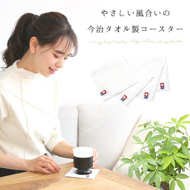 今治タオル コースター 日本製 白 ホワイト 4枚セット おしゃれ シンプル 布 布製 四角 【メール便送料無料】 キッチン雑貨 グラス タンブラー 飲み物 カップ マグカップ 置き 水滴 除去 机 デスク オフィス 来客 御祝 記念品 贈答 ギフト プレゼント agesugi_snk