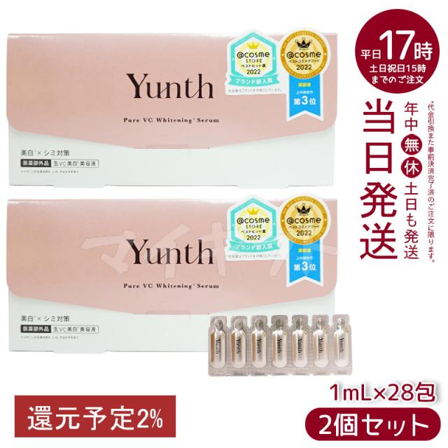 Yunth 生ビタミンC 美容液 1ml×28包 2個セット ユンス Yunth 生VC美容液 導入美容液 先行美容液 ブースター 毛穴 医薬部外品 パラベンフリー アルコールフリー 無香料 高濃度 アスコルビン酸 正規品 送料無料