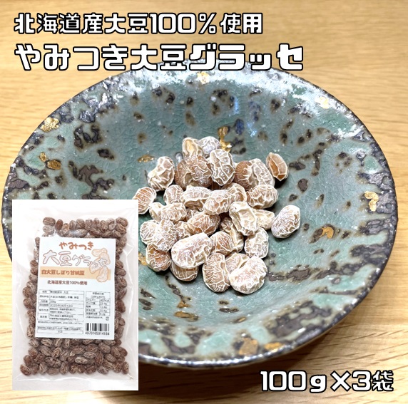 大豆グラッセ 100g×3袋 メール便 北海道産大豆使用 白大豆 絞り甘納豆 やみつき 国内産 豆力 国産 保存食 非常食 お菓子 豆菓子 味付乾燥豆 かみかみ大豆 お茶うけ 業務用 製菓 和菓子