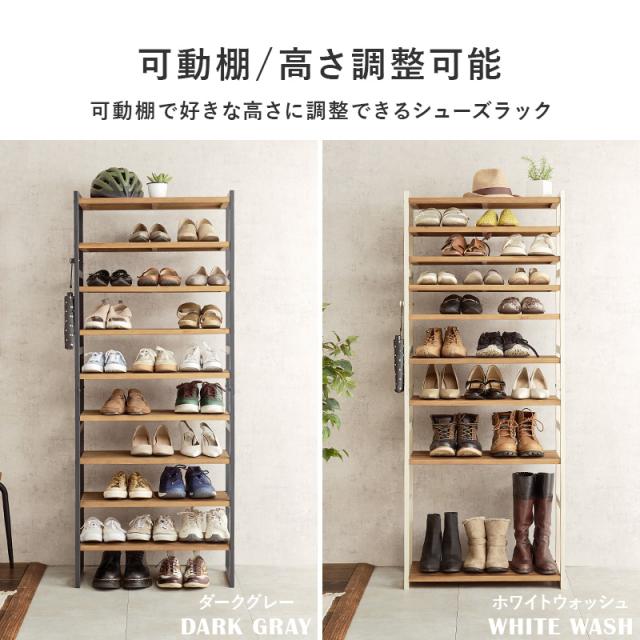 可動棚で高さ調節できるのでスニーカー、ブーツ、長靴、ハイヒールなど様々な靴に対応。