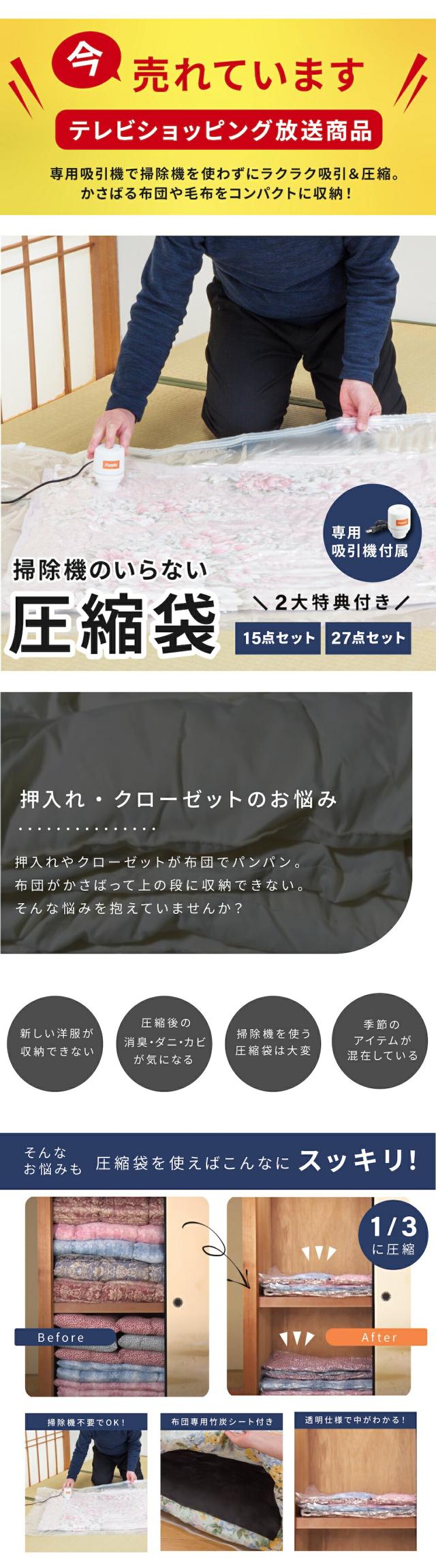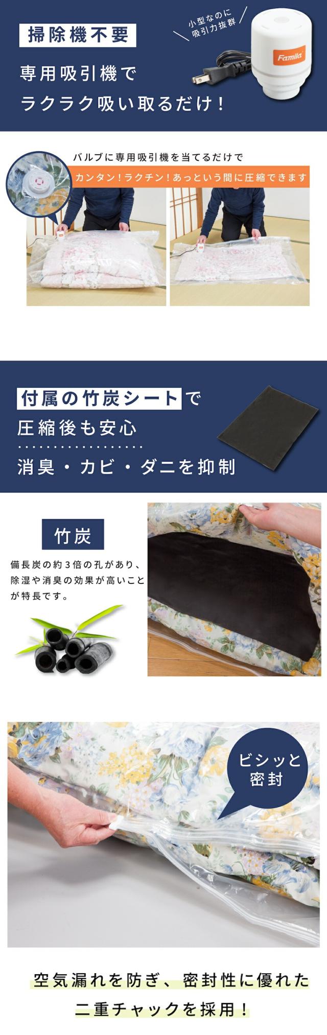 | 商品名 | ファミラ 掃除機のいらない布団圧縮袋 吸引機 圧縮袋 27点セット |