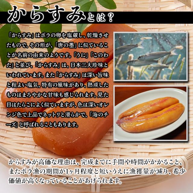 「からすみ」はボラの卵を塩蔵し、乾燥させたもので、