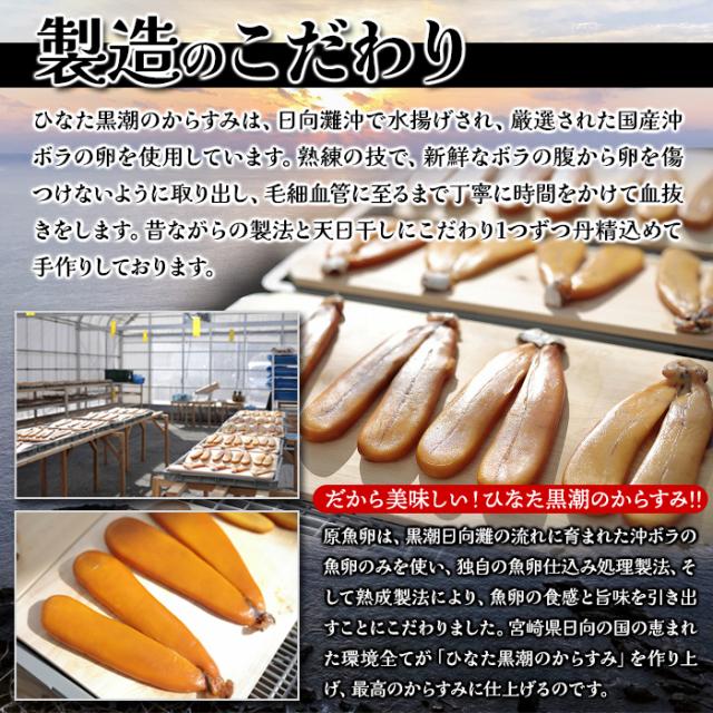 ひなた黒潮のからすみは、日向灘沖で水揚げされ、厳選された国産沖ボラの卵を使用しています。