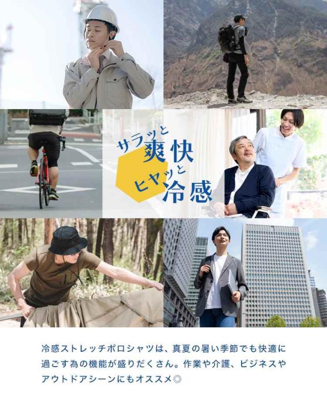 サラッとした肌触りで爽快な着心地と、ヒヤッと気持ちいい接触冷感素材を使用した機能性ポロシャツ。