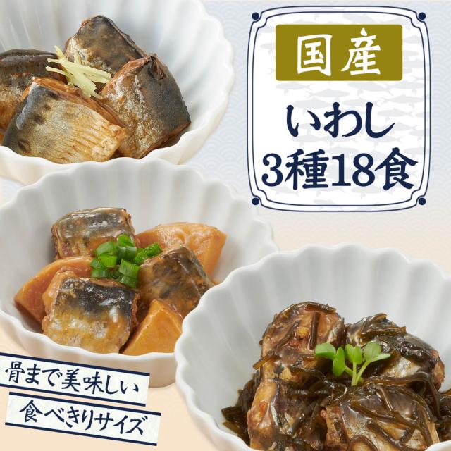 お歳暮 レトルト 魚 惣菜 おかず 煮魚 いわし 3種18食 詰め合わせ セット 【 送料無料 沖縄以外】 レトルト食品 常温保存 宝幸 国産 鰯 和食 総菜 煮物 味噌煮 梅じそ昆布 味付 お惣菜ギフト ご飯のお供 保存食 2025 お年賀 帰省 ギフト