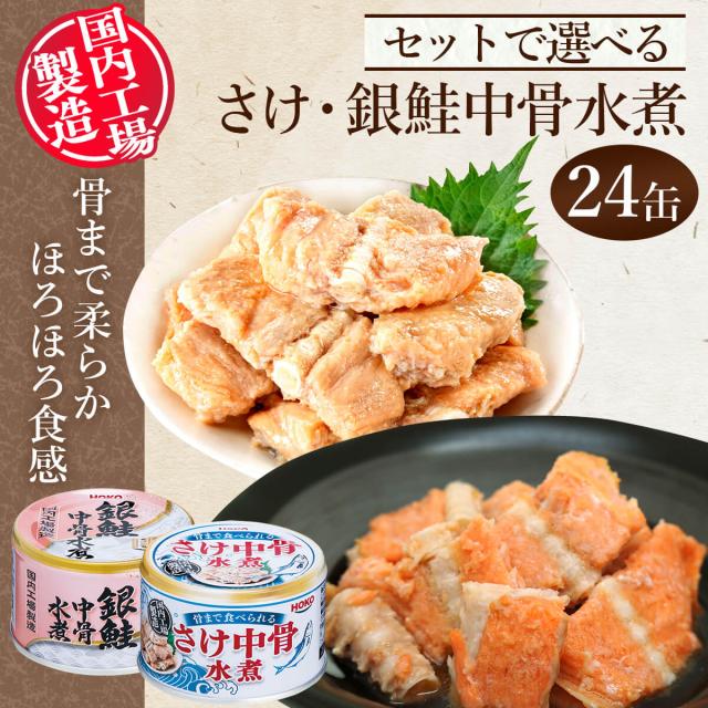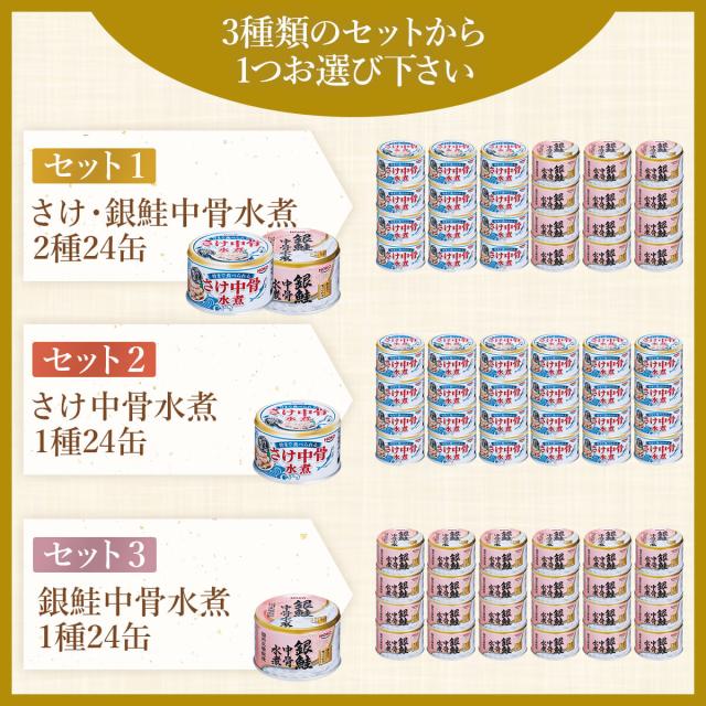 缶詰 魚 さけ 銀鮭 骨まで食べられる 中骨 水煮 3種類の セット から 選べる 24缶 詰め合わせ 【 送料無料 沖縄以外】 宝幸 惣菜 おかず 常温保存 煮魚 サケ おつまみ まとめ買い 食品 備蓄 非常食 保存食 お歳暮 2025 お年賀 2026 帰省 土産