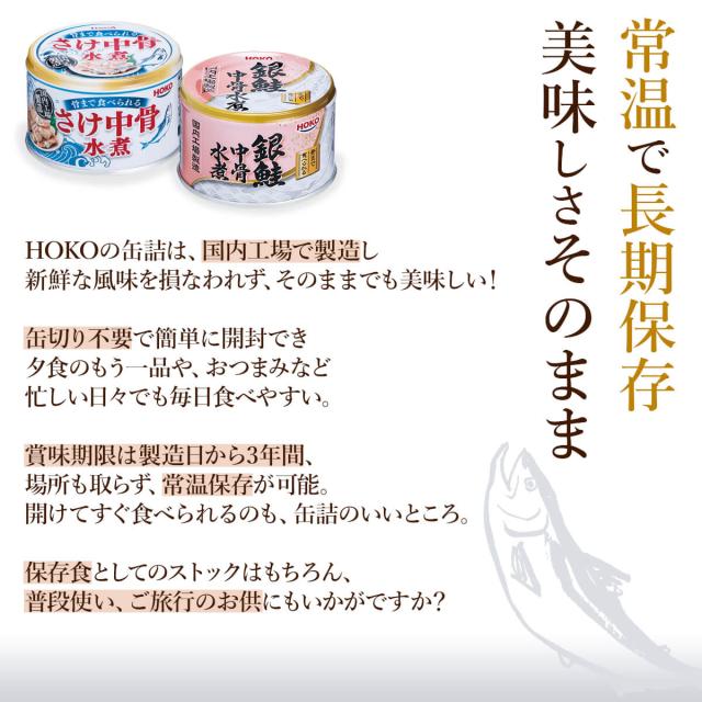 宝幸 HOKO 缶詰め さけ 銀鮭 中骨 水煮 3種類の 缶詰セット の中からお好きな 詰め合わせ を選べます。