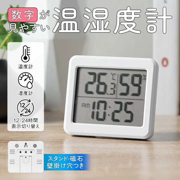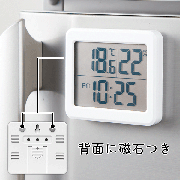 送料無料 !( メール便 ) デジタル温湿度計 デジタル時計 温度計 湿度計 見やすい大きいデジタル表示 薄型 コンパクト 軽量 マグネット設置 壁掛け 置き型【 温度管理 室温 暑さ対策 健康管理 ポイント消化 消費 1000円 以下 の商品】 送料込 2M◇ 温湿度計MT