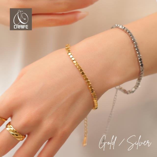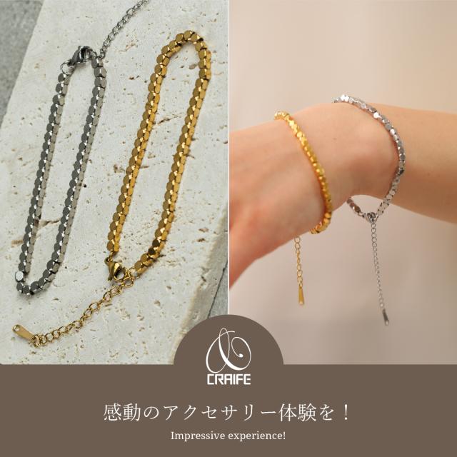ブレスレット サージカルステンレス 316L 金属アレルギー対応 18K コーティング レディース キューブ 大人 かわいい シンプル 上品 エレガント ジュエリー ゴールド シルバー 送料無料 プチプライス高見え CRAIFE