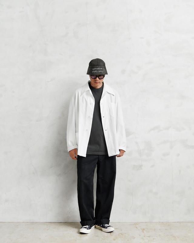 イタリア海軍「MARINA MILITARE ITALIANA」のホスピタルジャケットが入荷しました。ユーロワークのカバーオールを連想させる雰囲気を纏った3ポケットのホスピタルジャケットで、ハリのあるコットンが使用されたシャツのような素材感です。1980年代頃のアイテムが多く入荷しており、フロントはボタンで開閉、クラシックな香りが漂うロングポイントカラーが採用されています。ポケットにはそれぞれベース型の補強が入れられることでシンプルなデザインの中にアクセントになっているのがポイントです。
