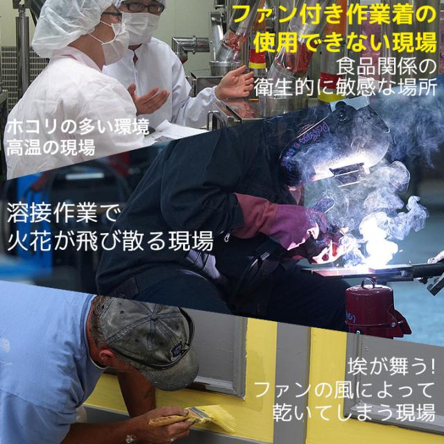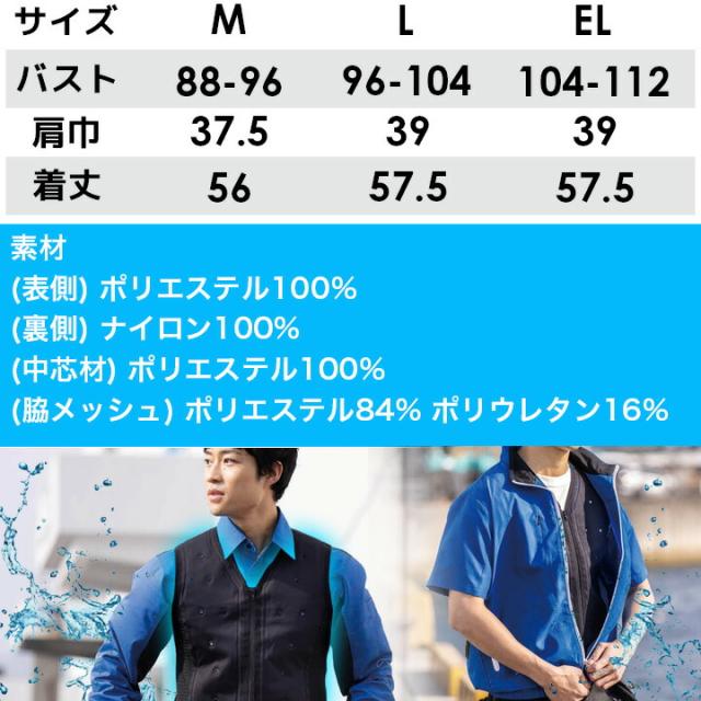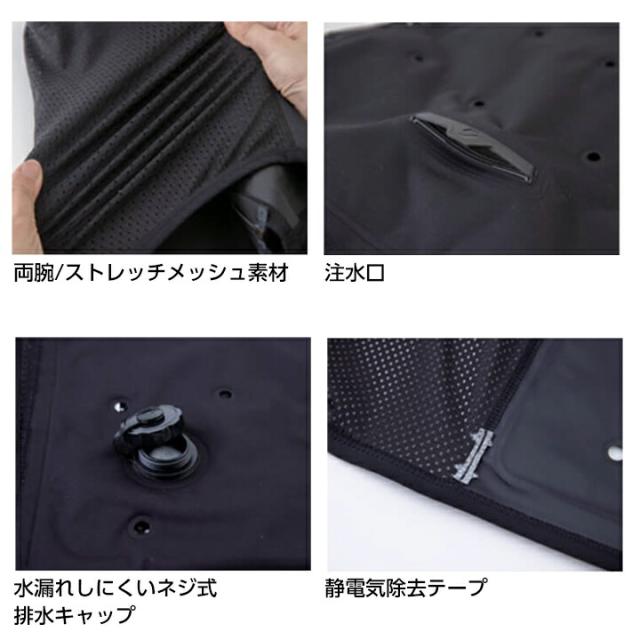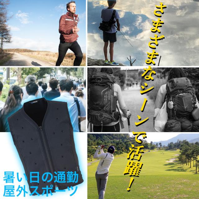 ● 電動ファン付きウェアのインナーのインナーに適した構造:ファンの風がベストの気化熱冷却を促進させるためファン付ウェアと合わせて着用する事でさらに冷却効率がUPします。