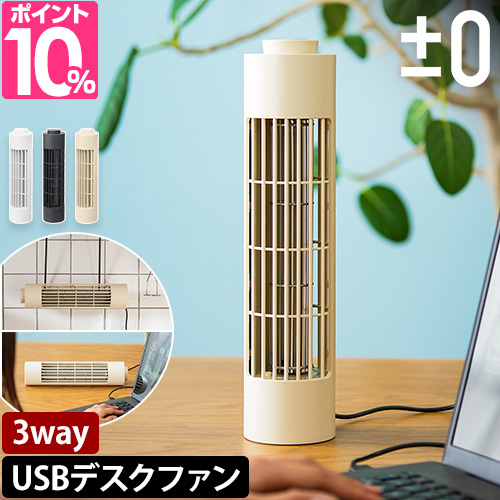 扇風機 卓上 卓上ファン 卓上扇風機 小型 コンパクト スリム おしゃれ パワフル 静音 壁掛け 引っ掛け タワー型 オフィス デスク 寝室 キッチン 台所 脱衣所 洗面所 トイレ 強風 涼しい USB給電 シンプル 白 ホワイト プラスマイナスゼロ USBデスクファン ±0 USB Desk Fan XQS-J230