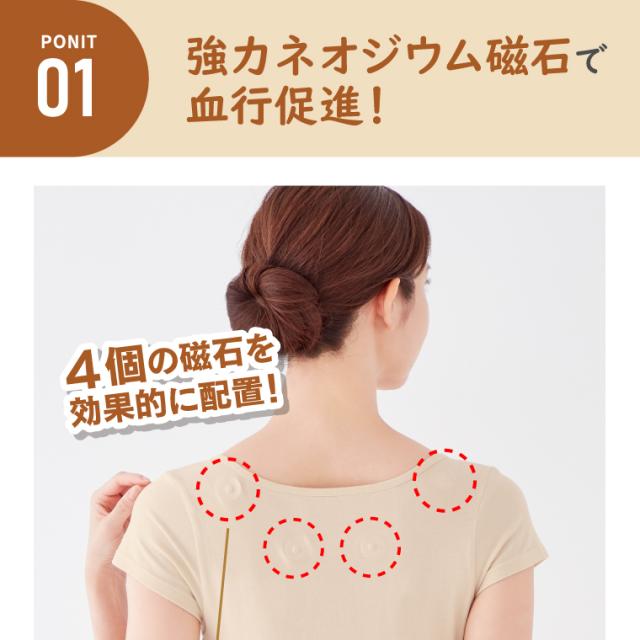肩と肩甲骨にかけて配置された強力ネオジウム磁石がコリをサポート。