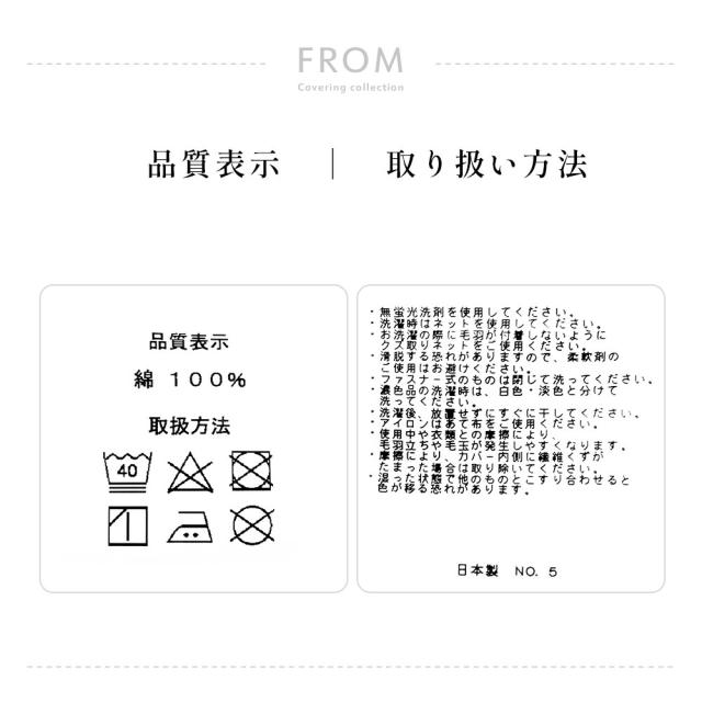 | ・コの字ファスナー、ダブルスライダー 3辺がコの字型に開くロングファスナーで、従来のカバーでは入れにくいボリュームタイプの敷布団でも出し入れが簡単に。ファスナーを両端どちらからでも開閉できるダブルスライダー仕様。ほどよい場所でスライダーを合わせ、カバー装着時の大きな動きを軽減。スムーズに動くYKK製。 ・人の肌に優しい、ソフトでしっとりタッチシルクの主成分であるシルクフィブロインというたんぱく質を綿の生地に結合させました。シルクフィブロインには人の肌に近いアミノ酸が大量に含まれており、人の肌に優しく、ソフトでしっとりとしたタッチでありながら、ベタつかず、さらりとした肌触りが特徴です。 ・日本製、丁寧な縫製生地の検品・採寸・裁断・縫製にいたるまで、生産管理の行き届いた日本のカバーリング専門工房が行っています。 | |