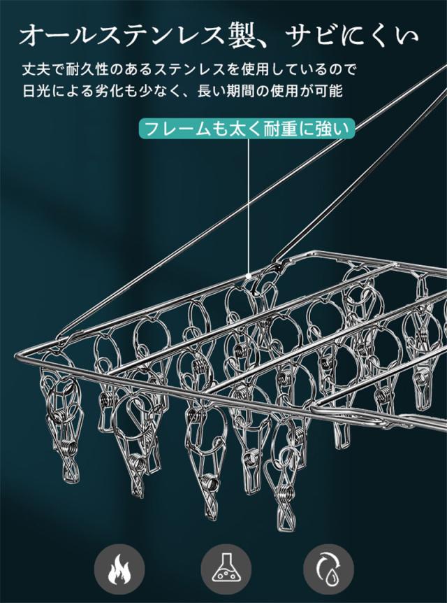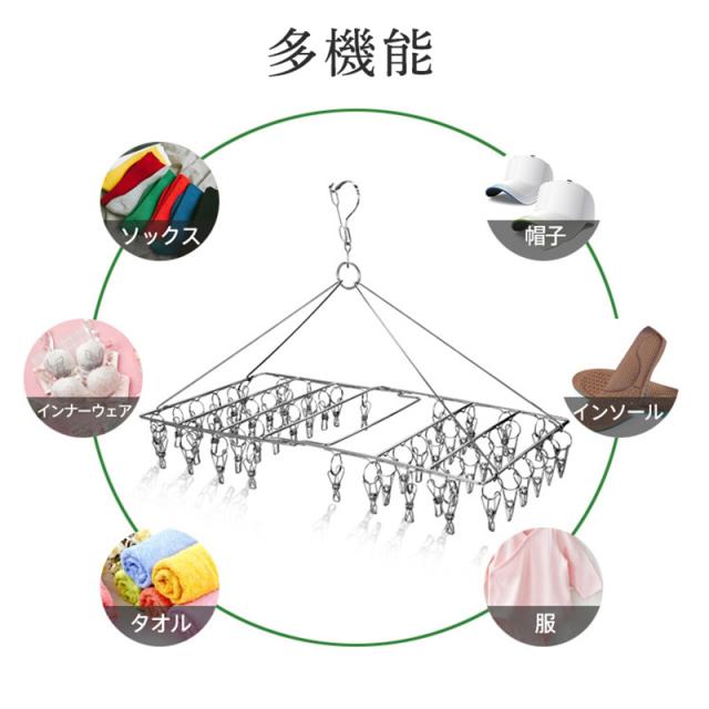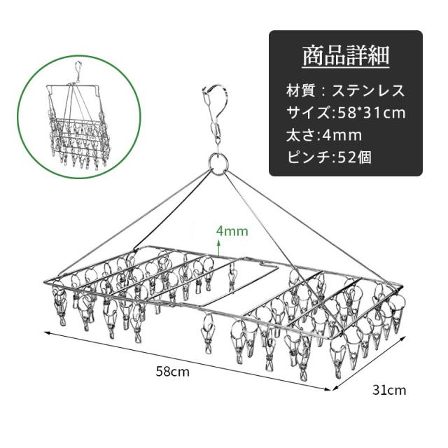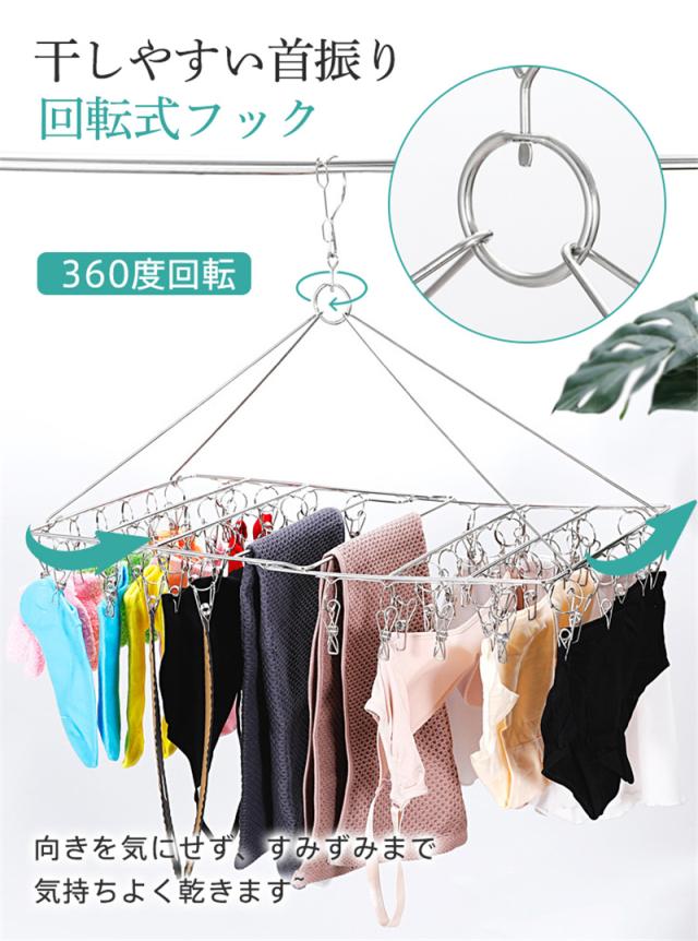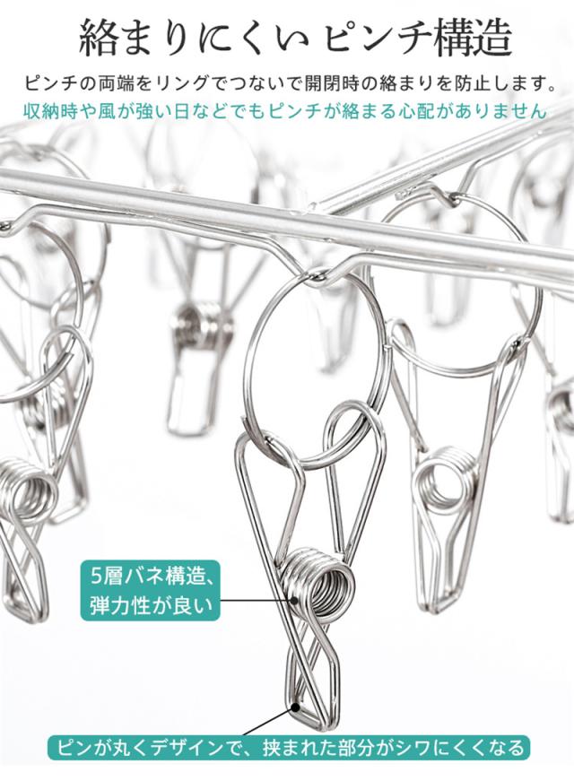 ステンレスピンチハンガー 52ピンチ 洗濯ハンガー オールステンレス サビにくい 落ちにくい 回転式 室内 室外 おしゃれ クリップハンガー タオルハンガー 洗濯物干しハンガー 角ハンガー 引っ張るだけ 洗濯ピンチ 洗濯 大きい 干し分け 多機能収納 折りたたみ式 室内外両用 物干し