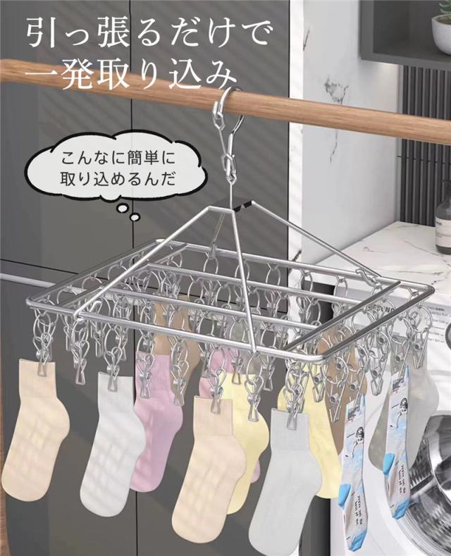 ピンチハンガー ステンレス 絡まない ピンチ 52個付き 引っ張る 物干しハンガー 折りたたみ 物干し 洗濯バサミ ズボンハンガー 錆びにくい