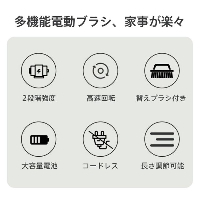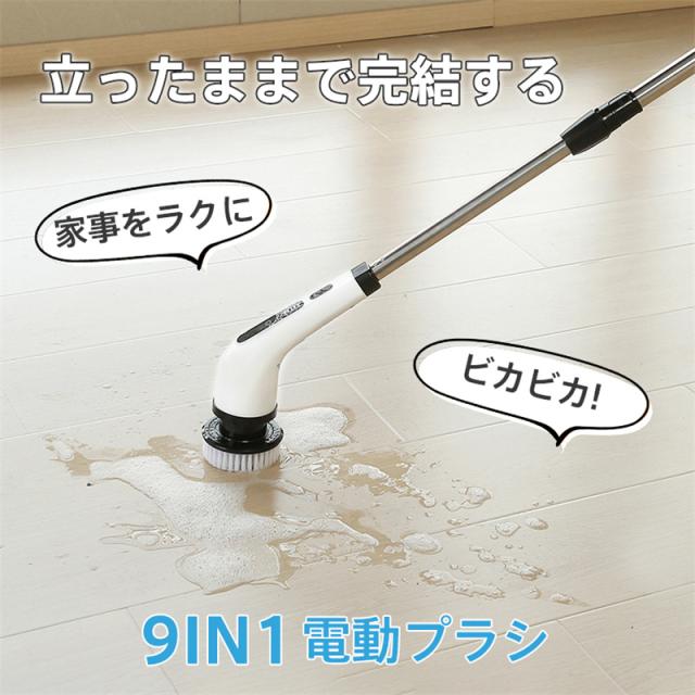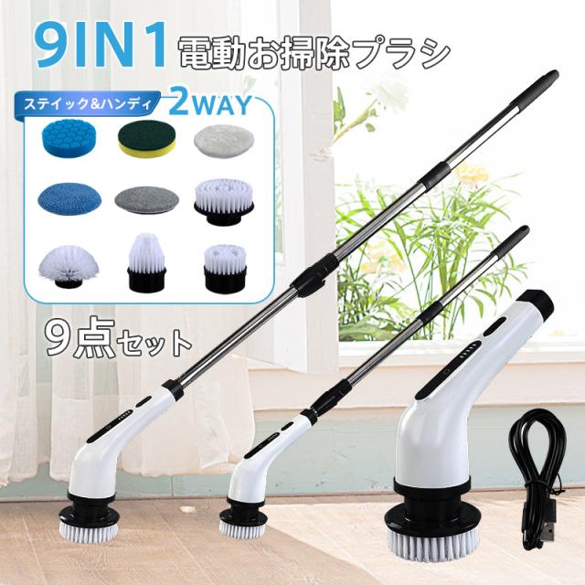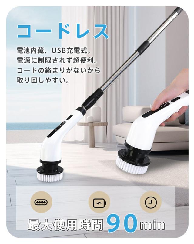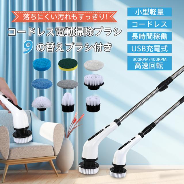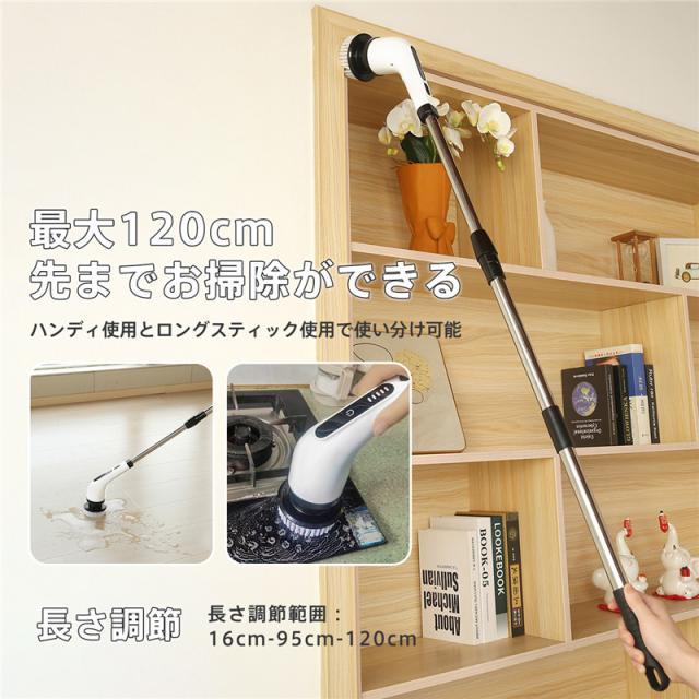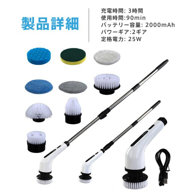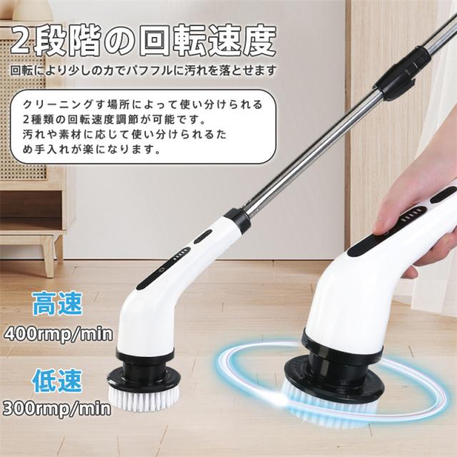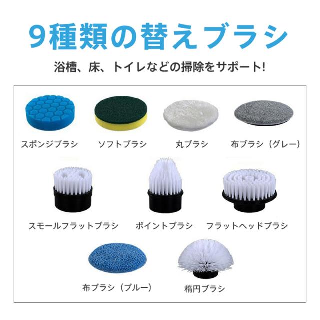電動掃除ブラシ 電動バスポリッシャー 充電式 高速回転 コードレス 9種類 付替えブラシ 電動掃除ブラシ 長さ調整 軽量 洗車 風呂 浴室 玄関 床