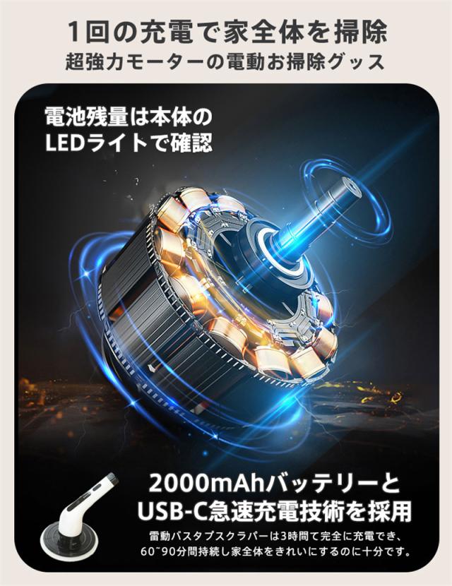 掃除用ブラシ キッチン掃除用 セット ワイヤレス USB充電式 90分稼働 手持ち ハンディ 車掃除 電動 防水 パワフル 台所 ポリッシャー バフ ブラシ バスルーム ガラス 車磨き スポンジ 角度 速度調整 組み立て簡単 回転 溝 隙間 トイレ 天井 研磨機 トイレ ベランダ