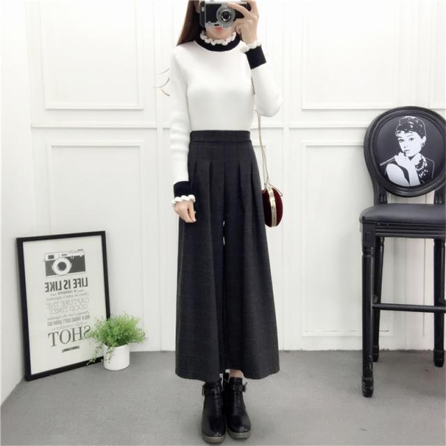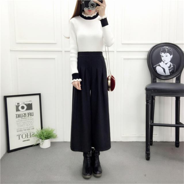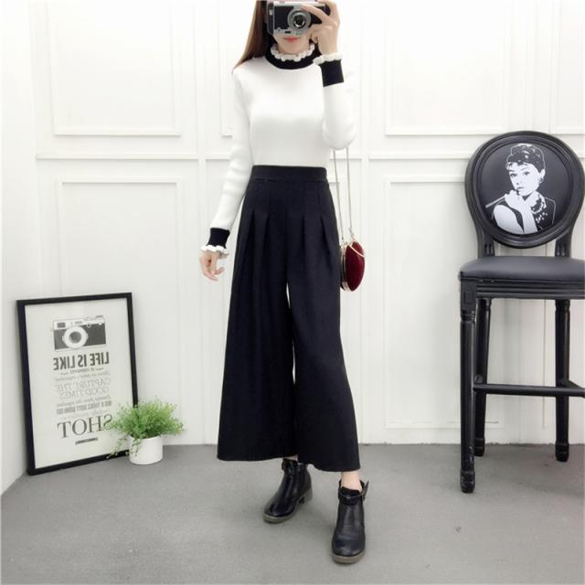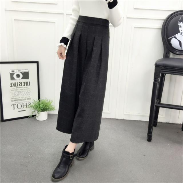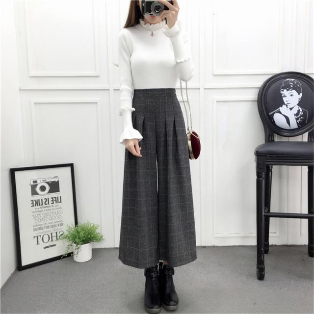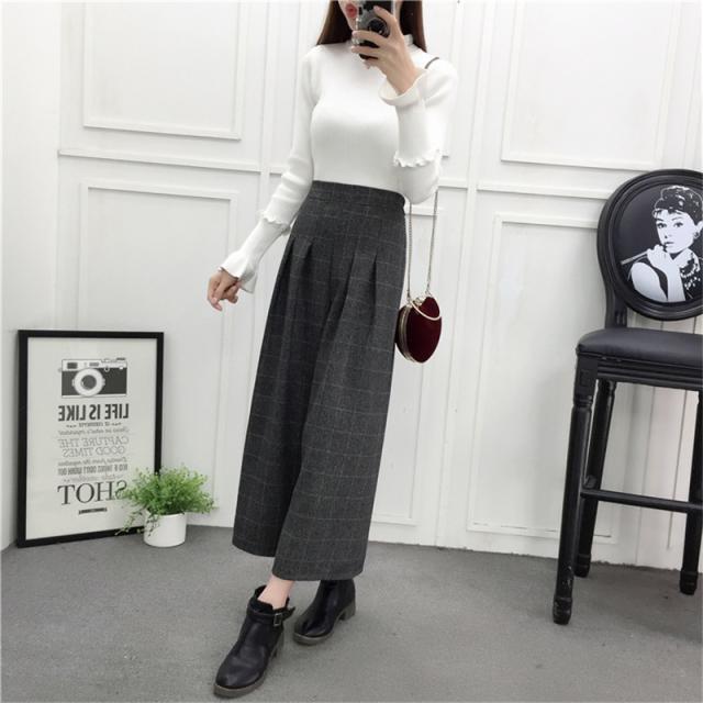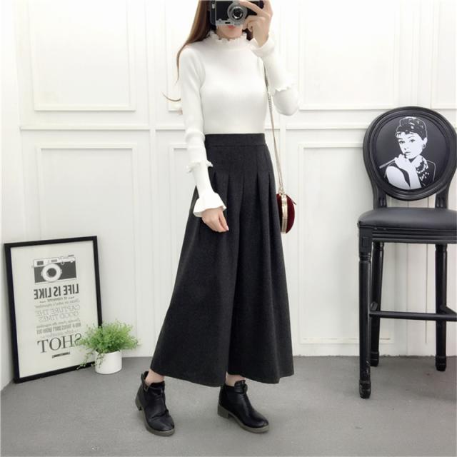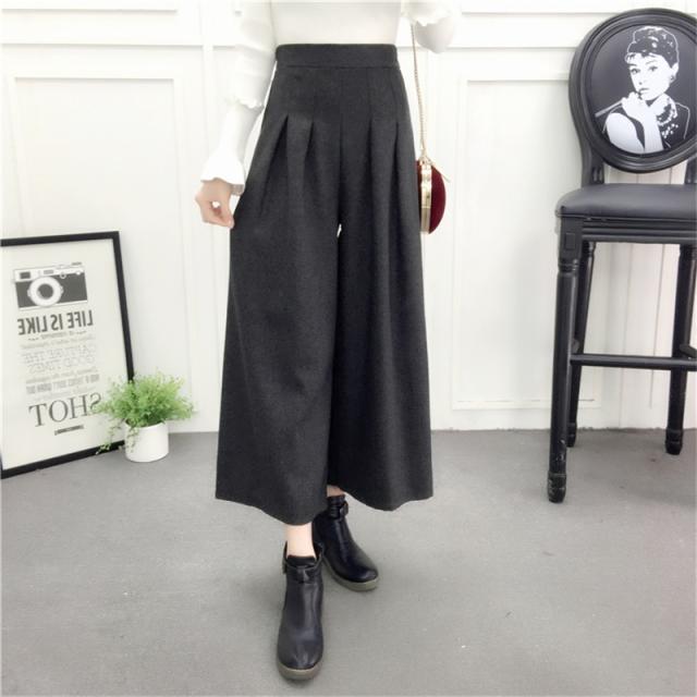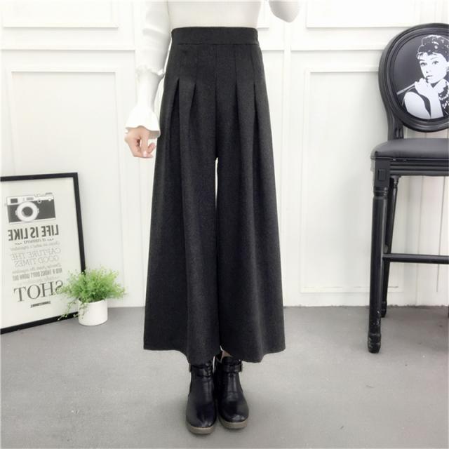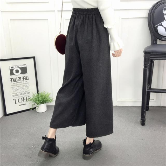 ワイドパンツ ガウチョパンツ レディース ハイウエスト アンクル丈 秋冬 厚手 ウエストゴム スカーチョ ボトムス きれいめ 一部即納 体型カバー 大きいサイズ