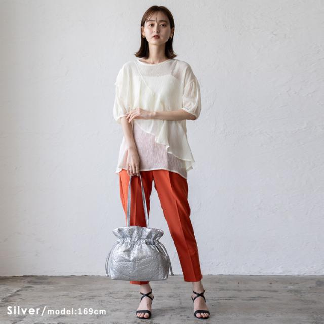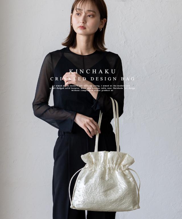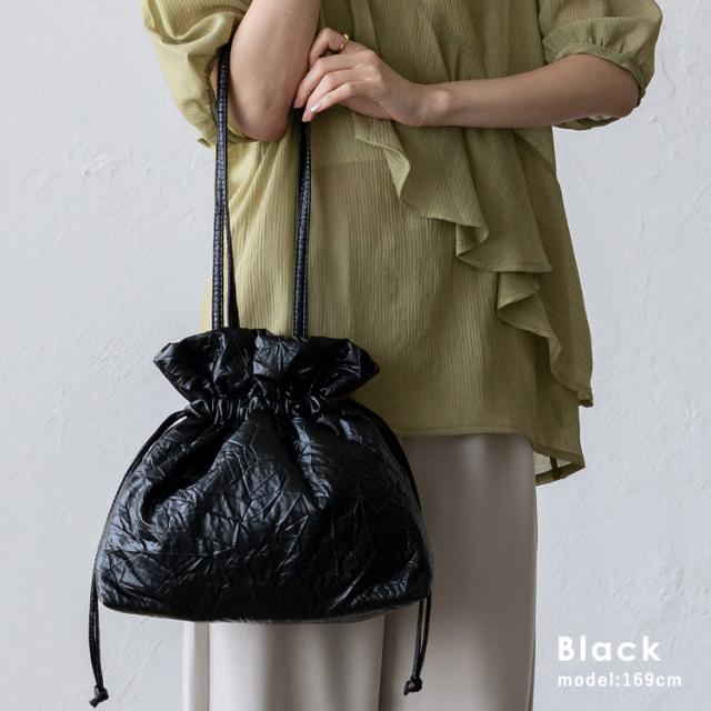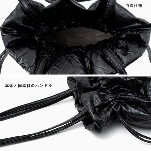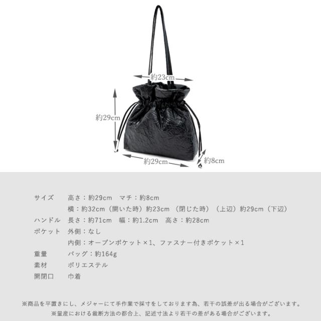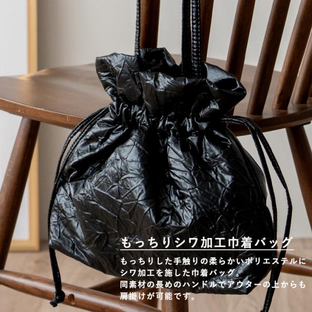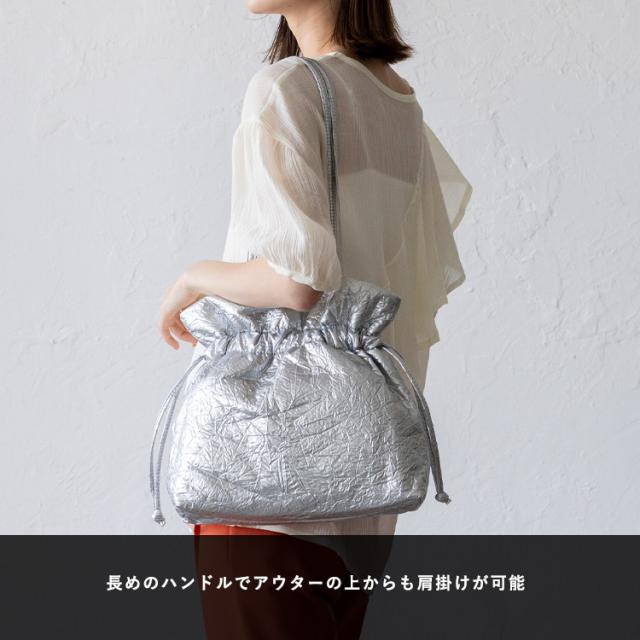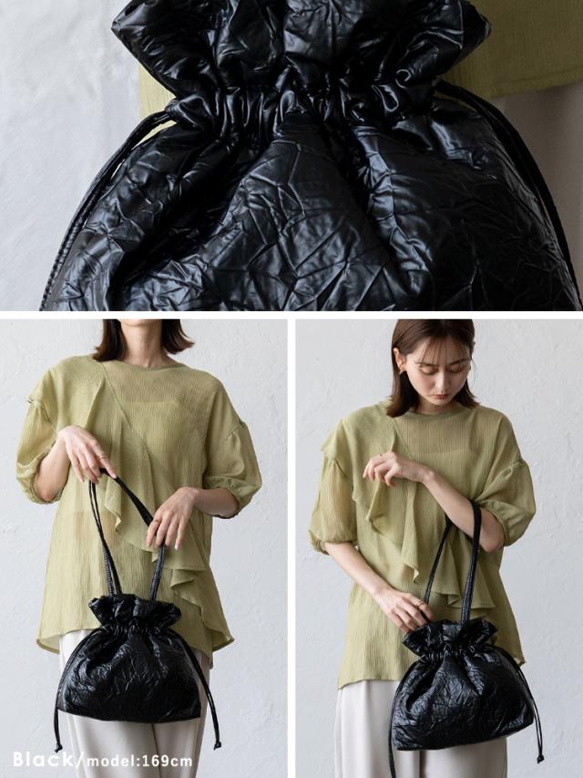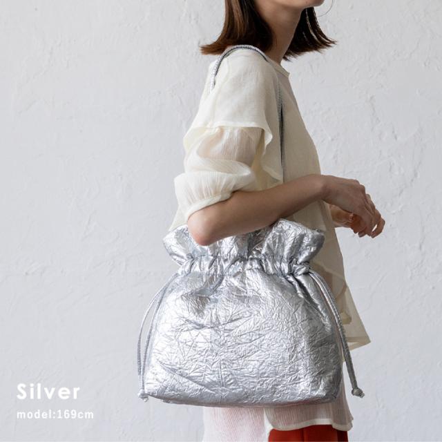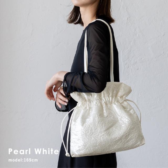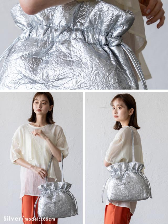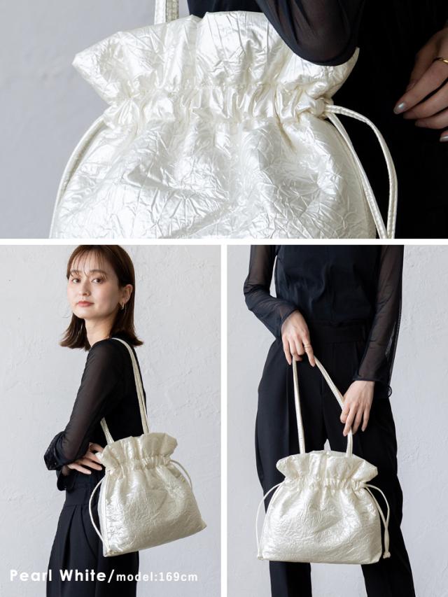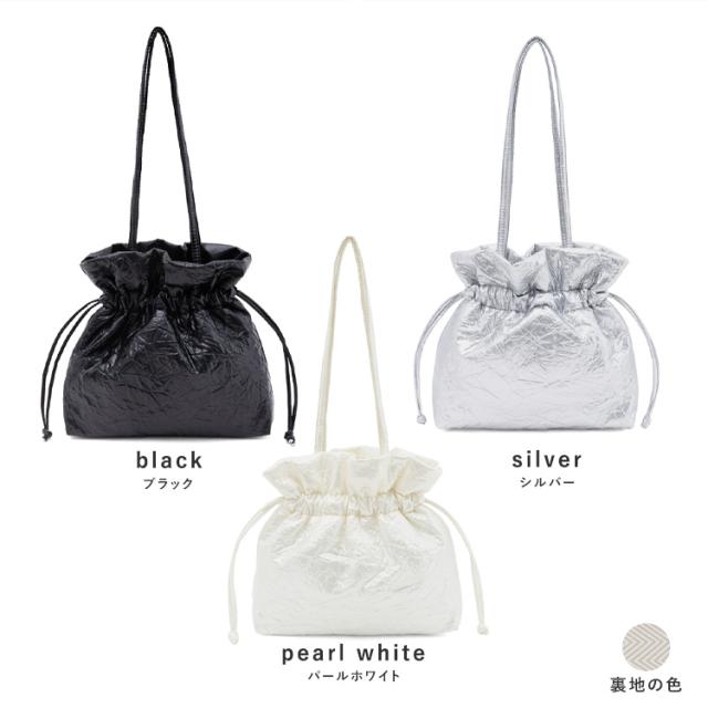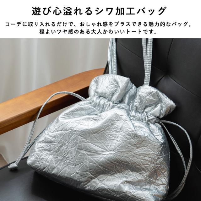 ショルダーバッグ 巾着バッグ レディース しわ加工 トートバッグ 大人 軽量 デザインバッグ 大きめ 巾着 シルバーバッグ トレンド しわくしゃ 絞り 軽いバッグ パール シュリンク 黒 春夏 夏バッグ nsb-30227z 敬老の日 プレゼント 【aroco/アロコ】新生活