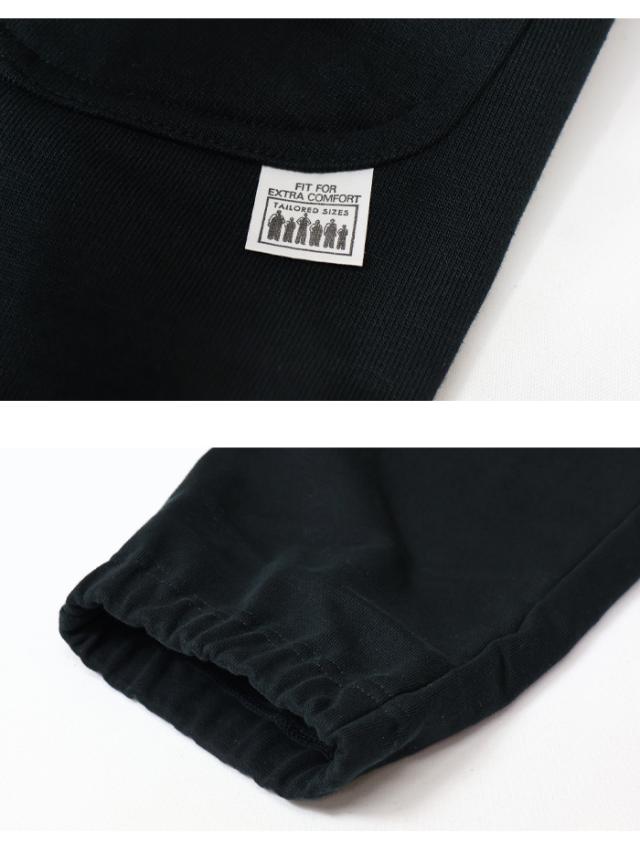 シルエットはモモ周りには適度なゆとりを持たせながら、ヒザからスソにかけて徐々に細くなるテーパードシルエット。肌触りの良い裏毛スウェット素材を使用しており、イージケアでストレスフリーな履き心地を実現しています。着こなしはキレイ目にもカジュアルにも対応します。