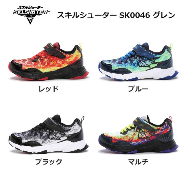 キッズ スニーカー スキルシューター SK0046 グレン SKLSHOTER 男の子 キッズ レッド ブラック ブルー マルチ 17.0-24.5cm SK 0046 運動会 マラソン大会