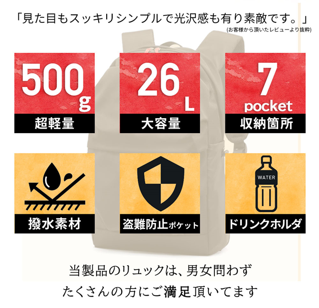 - 今日届きました。大きくて沢山入って欲しかったリュックサックです。仕事に使います。安く買えて嬉しいです。気に入りました。ありがとうございました。とても良かったです。