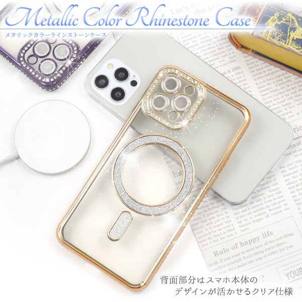 スマホケース iPhone12Pro用 MagSafe対応 メタリックカラー ラインストーンケース きらきら oおしゃれ iPhoneカバー 装着簡単 背面カバー 背面保護カバー スマホカバー シンプル マグセーフ対応 携帯ケース ケータイケース iPhoneケース ベーシック カジュアル バックカバー