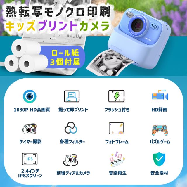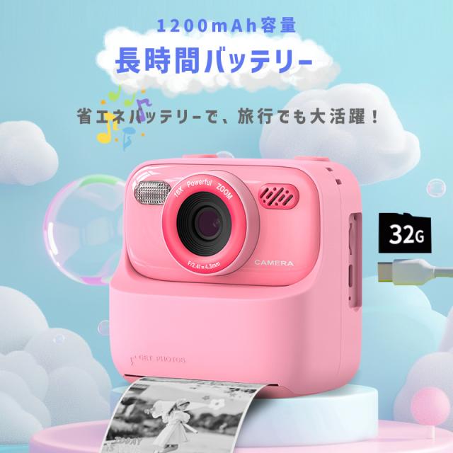 正規品・一年保証 トイカメラ プリントカメラ 32GBSDカード キッズデジタルカメラ 4800万画素 子供カメラ 高画質 写真 動画 ビデオ ゲーム内蔵 1080P 1200mAhバッテリー 子供の日 小学生 女の子 男の子 幼稚園生 新学期 入学祝 ギフト 贈り物 知育玩具
