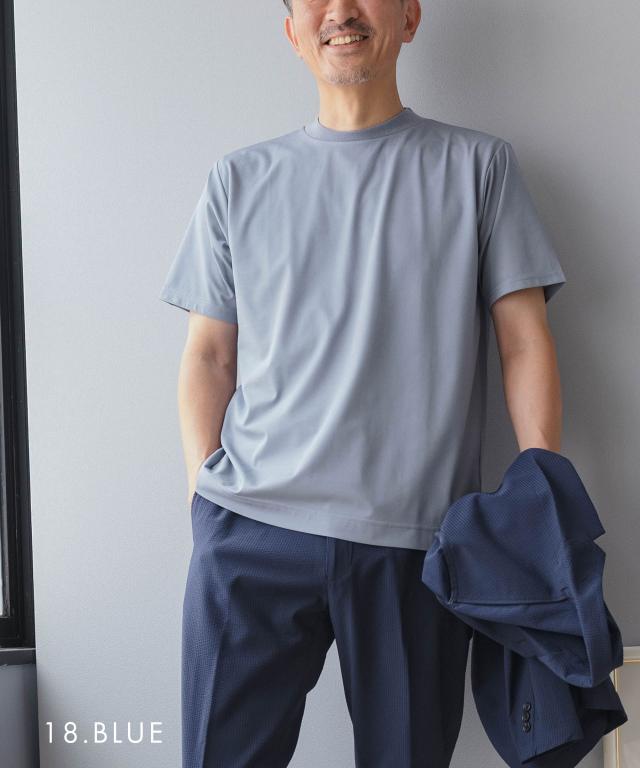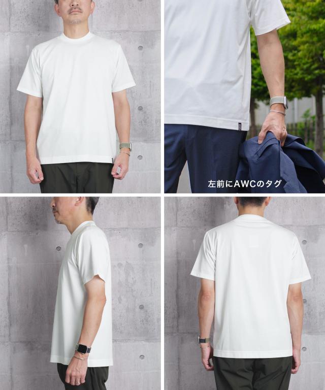 Tシャツ メンズ 半袖 ブランド AWC 接触冷感 吸汗速乾 ジャケットTシャツ オンT ビジT ビズT クールビズ ジャケット専用 キレイめ オフィスカジュアル 通勤 デート セットアップ コーディネート カットソー トップス クルーネック 襟高 ポンチ素材 春 夏 秋 30代 40代 50代