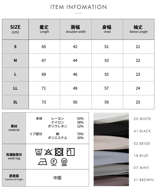 上品な素材感がドレスライクな見え感、 ジャケットインやセットアップのインナーに最適なジャケット専用Tシャツ。 一番のポイントは後ろ襟の高さ。 後ろ衿が高く設定されているので、 地肌にジャケットが触れることを防ぎ、 皮脂汚れ、着用時の違和感を気にすることなく着用できます 着丈はジャケットがきれいに見え、なおかつジャケットを脱いでも 程よい丈感を設定。 ツルッとした上品な「ポンチ」素材を使用。 目の詰まった素材が生み出す程よい光沢感がオンシーンに最適。 さらに、暑い夏に嬉しい速乾&接触冷感。 サラサラが続く着心地と、触れた瞬間のひやっと感。 モデル 178cm 着用サイズ L キーワード:Tシャツ 半袖 セットアップ きれいめ シンプル 無地 白 黒 ホワイト ブラック M L LL 3L ジャケットTシャツ ジャケット セットアップスーツ スーツ 冷感 ビジネス カジュアル オフィス オフィスカジュアル 婚活 ディナー デート 食事会 撮影 春 夏 30代 40代 50代 60代 20代 70代 実用的 父の日ギフト クルーネック ミント グリーン ベージュ ブルー 青 サックス ブラウン あずき色 多色展開 |