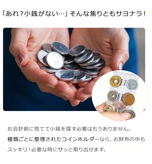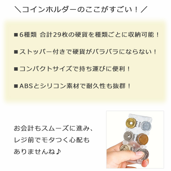 ■6種類 合計29枚の硬貨を種類ごとに収納可能!
