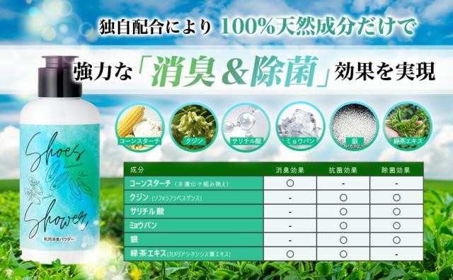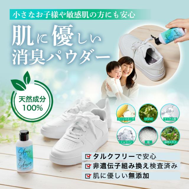 靴 消臭 粉 パウダー シューズシャワー Shoes Shower 70g 靴 消臭 粉 足 匂い 臭い スニーカー ブーツ パウダー 靴専用 フットケア 革靴 ミョウバン 銀 緑茶 サリチル酸 足用 送料無料