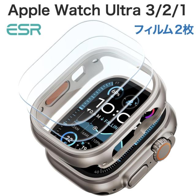 ESR Apple Watch Ultra 3/Ultra 2/Ultra 1(49mm) ケース 保護カバー 強化ガラスフィルム 2枚つき Armorite Series アップルウォッチカバー 全面保護 耐傷性 指紋防止 チタニウム色