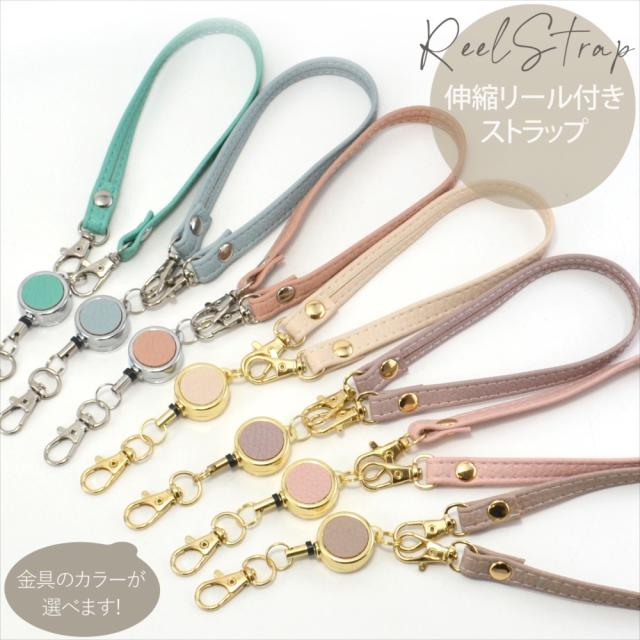 リールストラップ リールキーホルダー リール付き 伸縮 ストラップ くすみカラー キーリール リール リール付きストラップ 【単品販売】 伸びる カラビナ キーホルダー ゴールド シルバー リールストラップキーホルダー 定期入れ パスケース カードケース 印鑑 シャチハタ