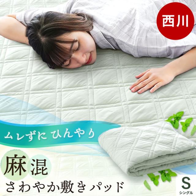 西川 ひんやり 夏 涼感 敷きパッド シングル 麻 クールパッド 冷感マット 通年 100×200 2025y5 2mtm25