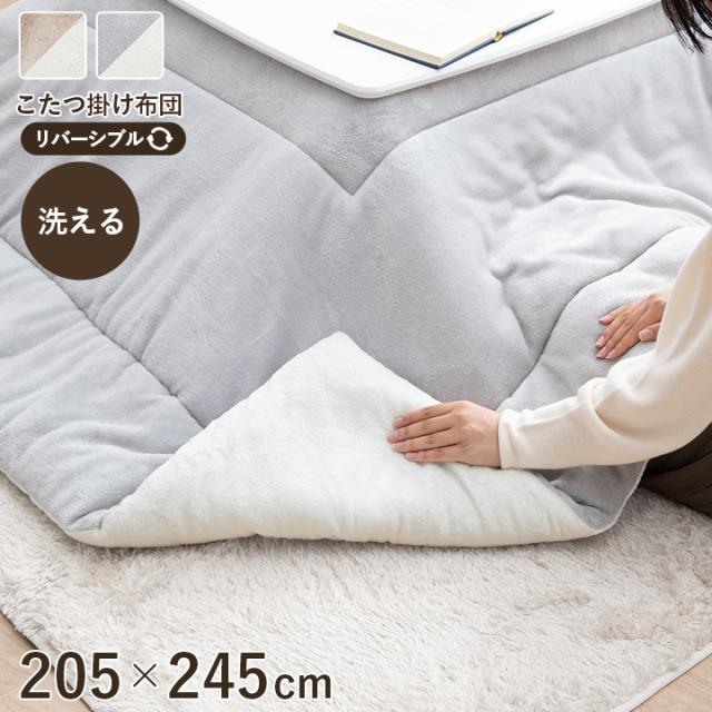 | ■リバーシブル仕様のこたつ布団で、両面にふんわりやわらかなフランネル素材を使用しています。 ■洗濯機で洗えるので清潔にご使用できます。(洗濯ネットをご使用ください ※205×245cmは手洗い) ■コンパクトに収納できるので、収納スペースが少ない方にもおすすめです。 |